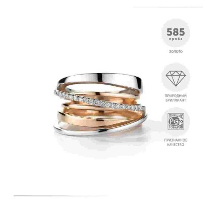 АЛЬКОР Кольцо золотое женское 585 пробы с 19 бриллиантами